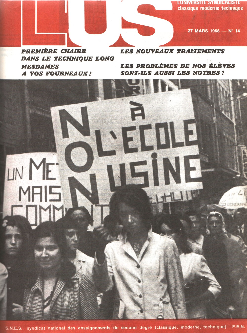 Après le succès des grèves et manifestations dans toute la France organisées par zones par le SNES, fin février-début mars 1968, la direction du syndicat invitait les collègues à écouter et comprendre les mécontentements, désirs et angoisses devant leur avenir de leurs élèves. Déjà à la rentrée précédente, les élèves du lycée Simone Weil de St-Etienne, leurs parents et leurs profs avaient manifesté ensemble.