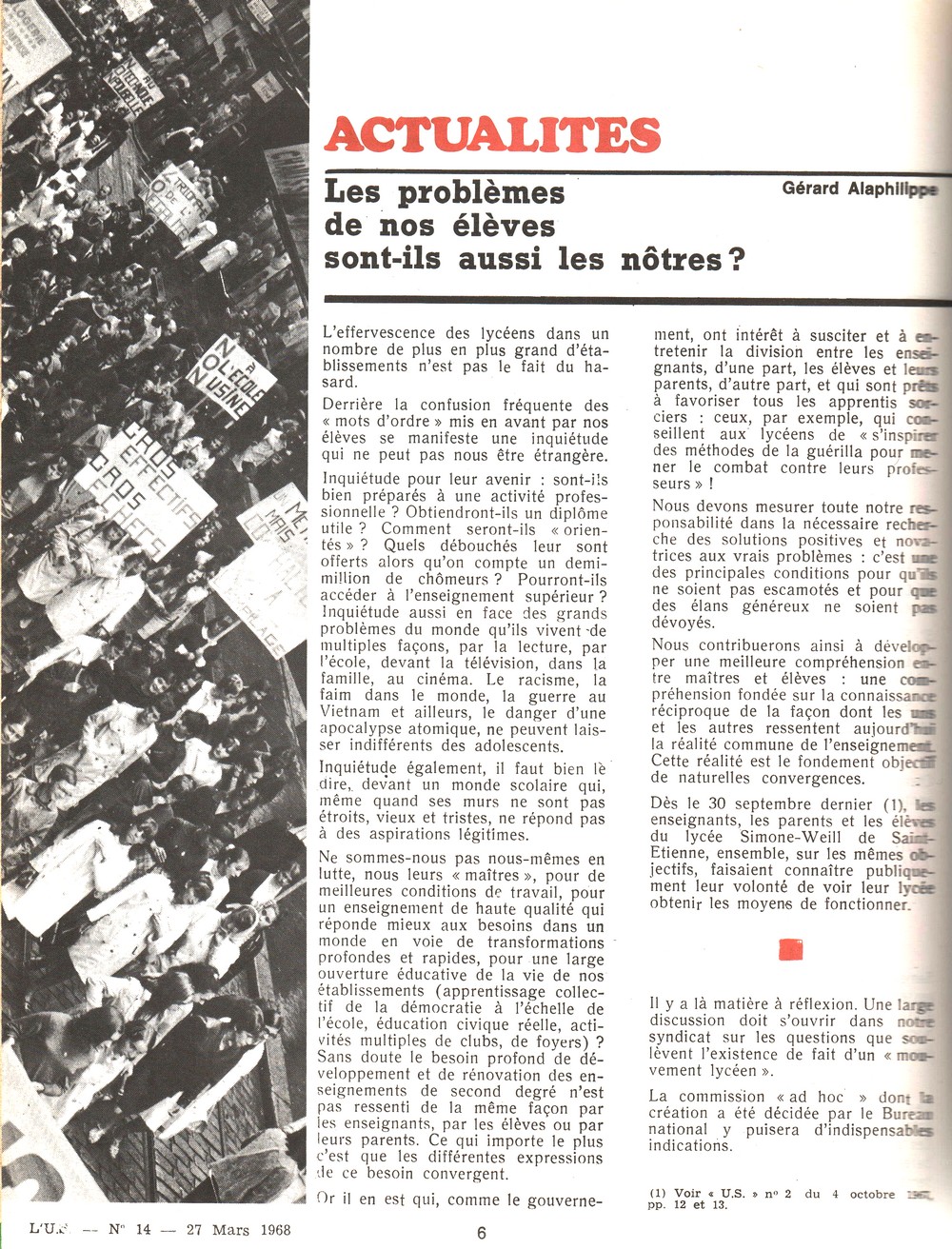 Les problèmes de nos élèves sont-ils aussi les nôtres ? (mars 1968)