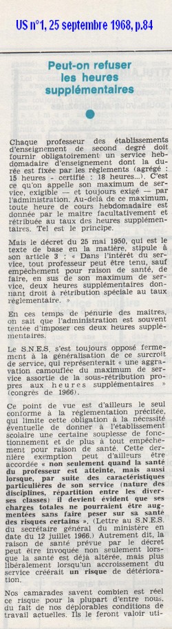 Le SNES opposé au principe même des HS donnait alors les recommandations suivantes. Rien de nouveau sous le soleil.